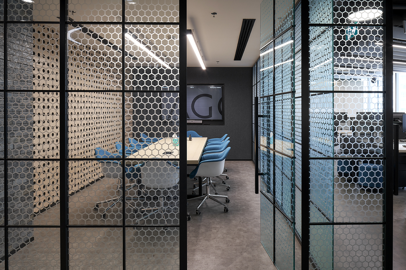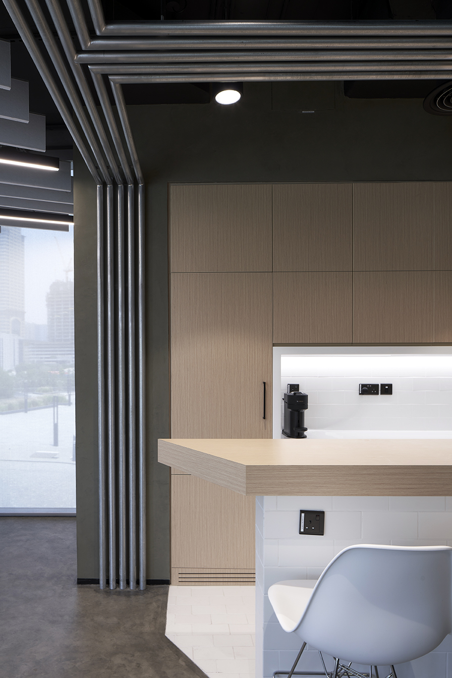A consolidated team effort helped deliver the first Dragos office located within the Middle East and influence from Dragos’s core service, Industrial Strength Cybersecurity for Industrial Infrastructure, guided the unique interior design aesthetic.