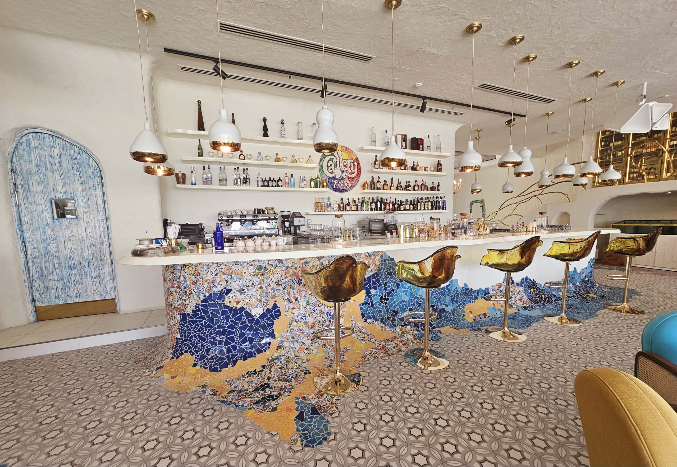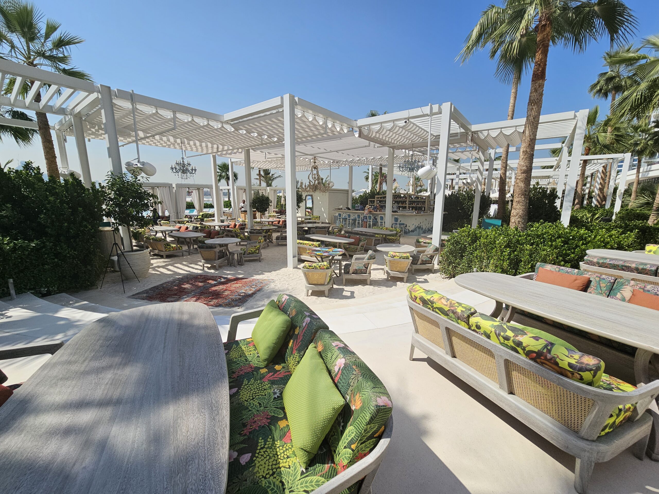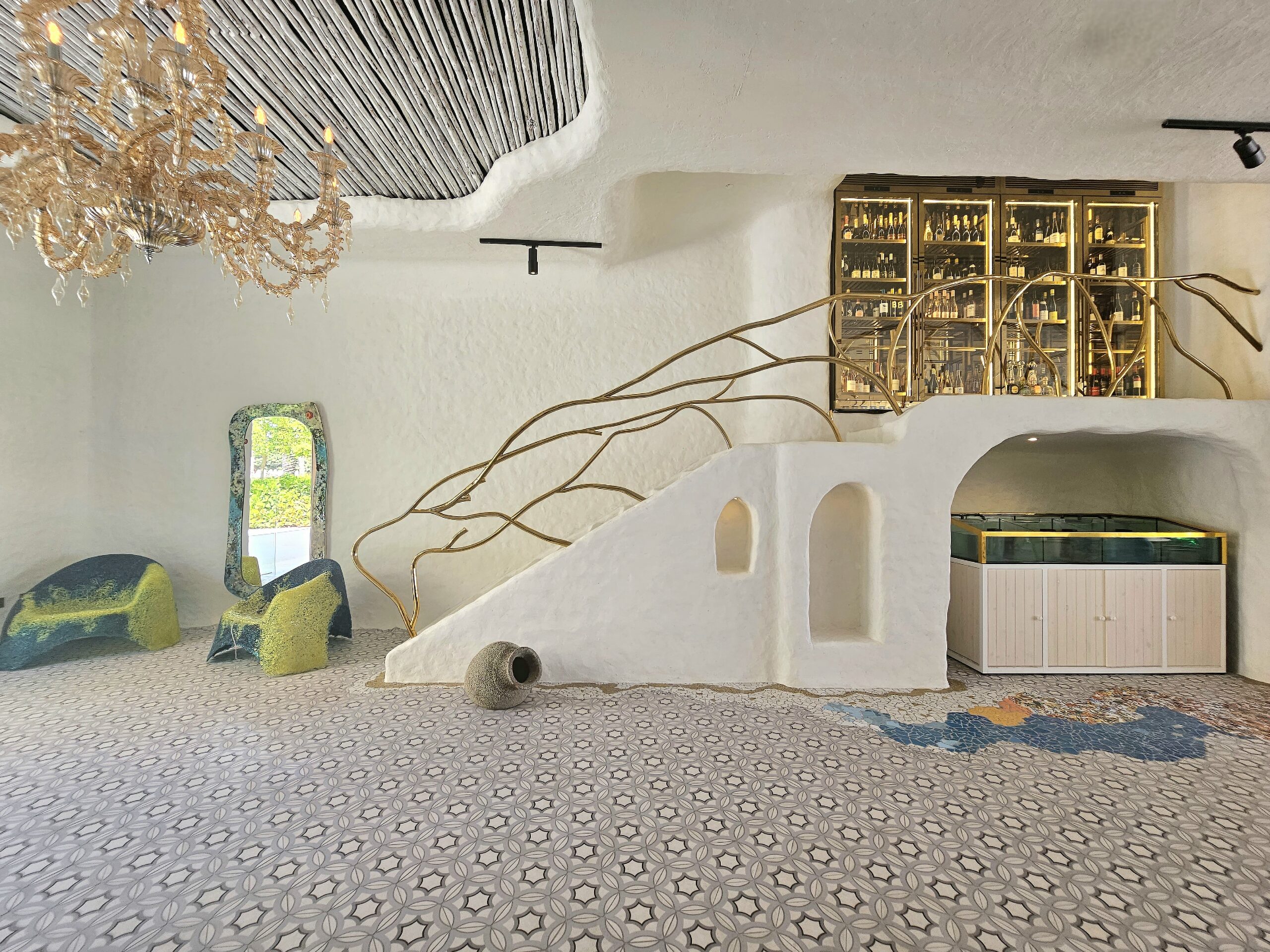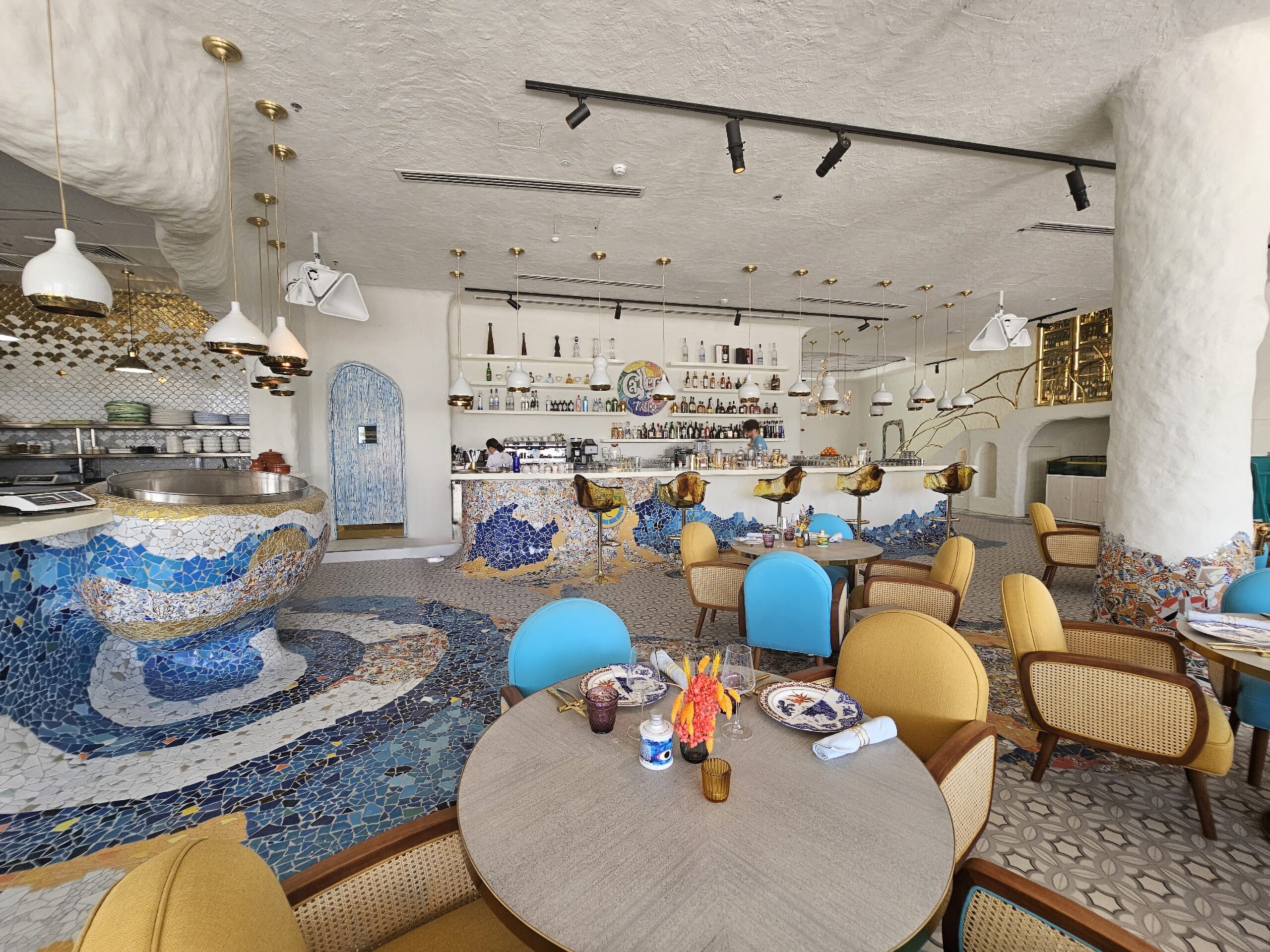 CM Project Management provided project and cost management services for the beach club venue Gallery 7/40, located at The Club, Palm Beach West, Palm Jumeirah. Our scope included the coordination and approval of the ceiling structural slab opening to facilitate the installation of a new feature staircase for rooftop access.The design was inspired by Antoni Gaudi and the villages of ancient Greece with imperfections throughout. The venue doubles up as an art gallery, showcasing some finer pieces of art from around the world. The dining is inspired by its location on the Palm Beach West and the Mediterranean.